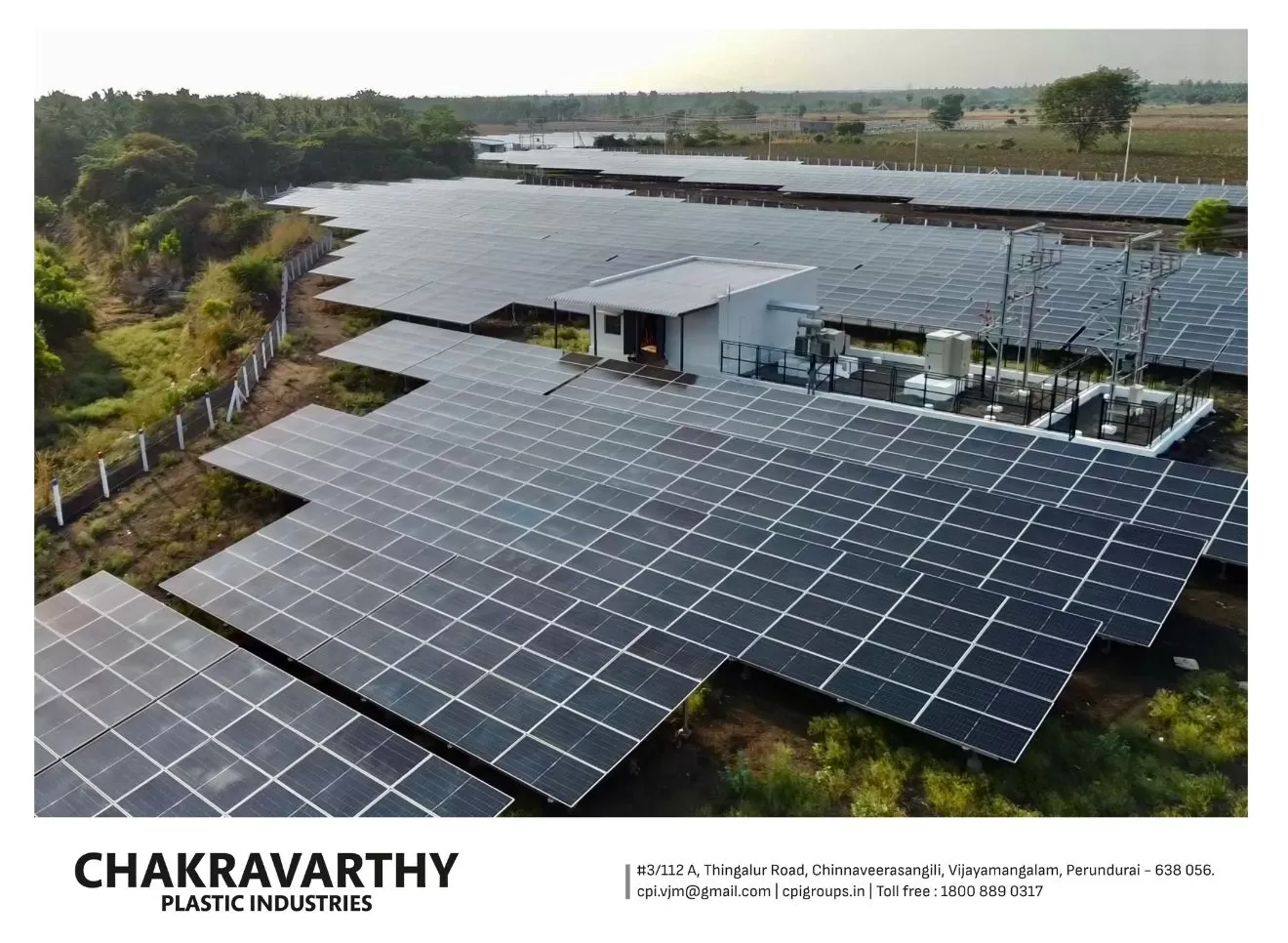 At Chakravarthy Plastic Industries, we are committed to driving positive environmental change through the use of clean, renewable energy. Our entire manufacturing facility is fully powered by solar energy, significantly reducing our carbon footprint and contributing to a greener planet. By harnessing the power of the sun, we not only ensure sustainable operations but also set an example in the plastics industry for responsible energy use. This initiative reflects our dedication to innovation, sustainability, and creating a better world for future generations.